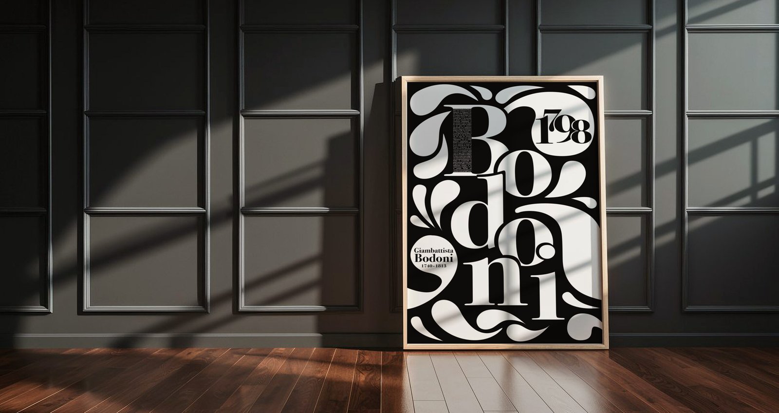 L’affiche propose une lecture visuelle riche et équilibrée, susceptible de capter l’attention des professionnels du design autant que du grand public. La composition réalise une fusion organique entre la forme et le contenu : les lettres ne se contentent pas d’épeler “Bodoni”, elles construisent une expérience visuelle qui célèbre la beauté structurelle de cette typographie classique.